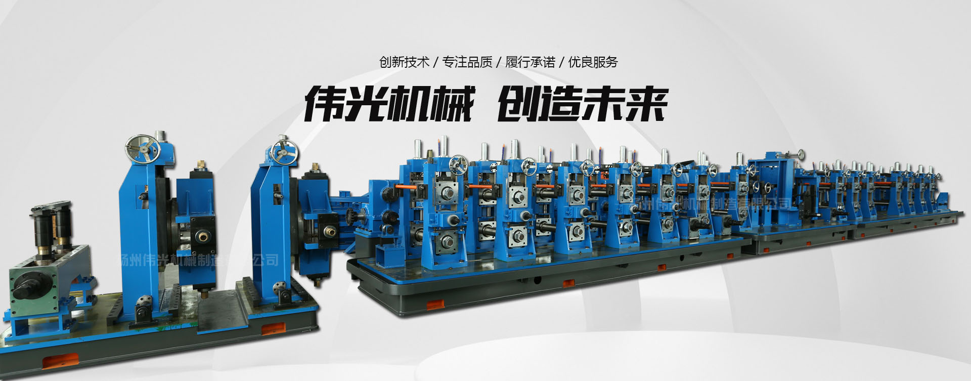 揚州偉光機械制造有限公司是生產精密鋼管、方管機組、邦迪管機組、焊管設備、焊管機組、鍍鋅管機組、冶金制管設備的專業廠家,廠區占地面積35000多m”,建有標準廠房10000多m2。目前公司設有焊接鋼管,冶金設備制造兩個車間,擁有2條具有國內水平的焊管生產線,承接小口徑精密鋼管生產,形成了精密焊管設備制造,旅游用品結構管二大系列產品。